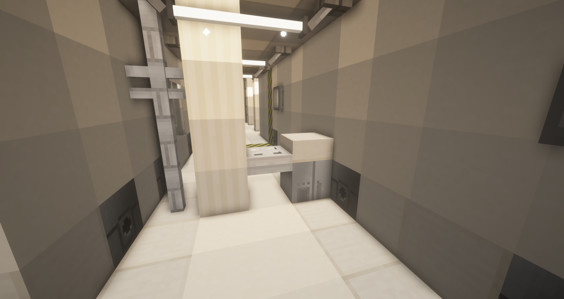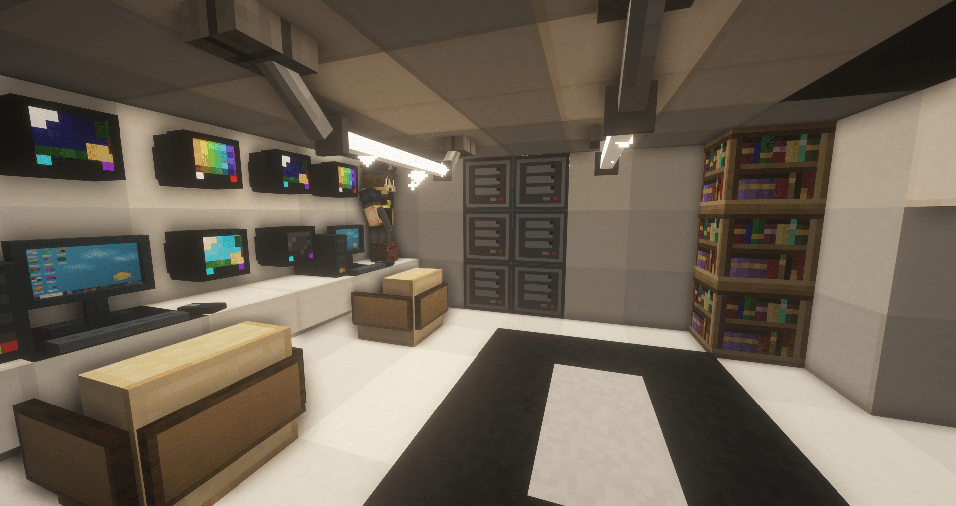 Dans cette salle se situent des serveurs qu'il faudra hacker pour ouvrir les deux portes noires du sas de sécurité.