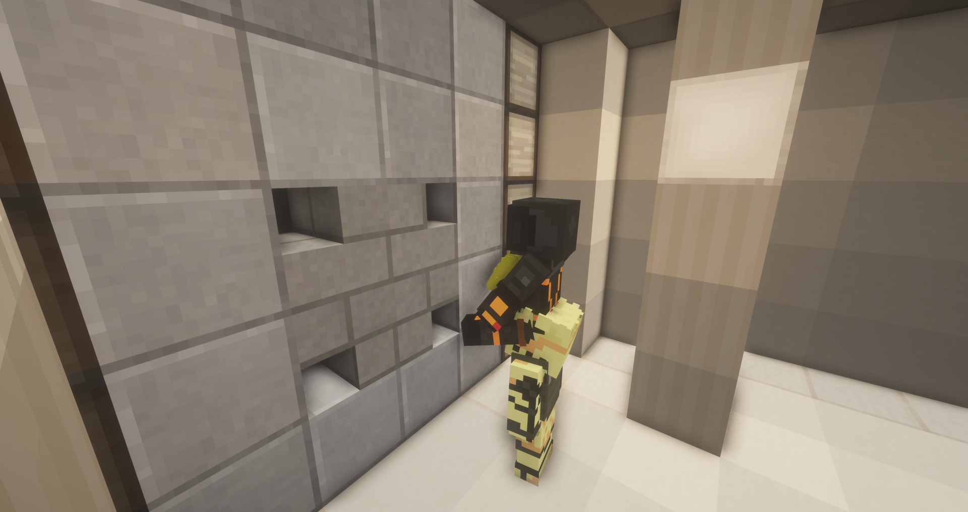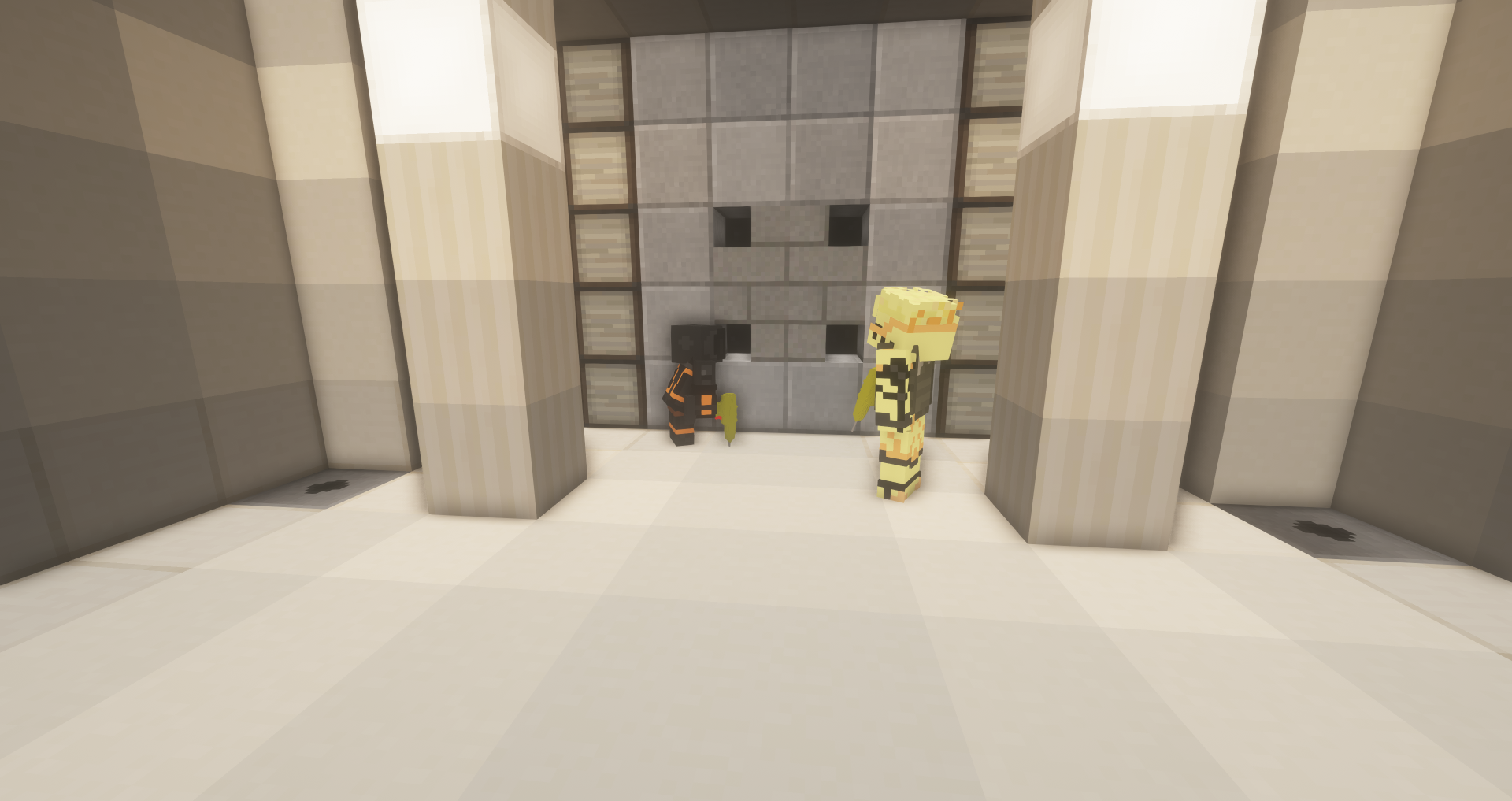 Pour percer les blocs du haut, les voleurs devront se faire la courte échelle en cliquant (Sans item dans le main) sur leur coéquipier. Le voleur du haut devra se charger de percer l'obsidian tandis que celui du bas devra bien se positionner pour permettre à son coéquipier de réaliser sa tâche.